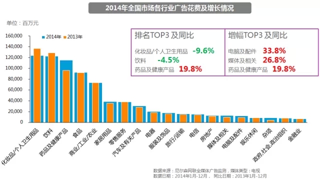 图四:2014年全国市场各行业广告投放变化