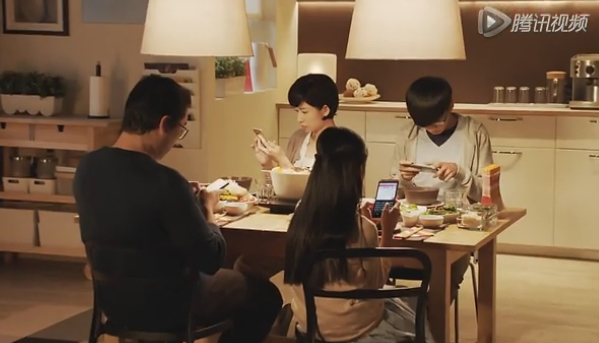 一家人围在一起,各怀心事,沉浸在自己的手机世界中,面前的饭桌被掉包也浑然不知。原来,宜家推出了一款新的智能餐桌,将手机置于其中,就能启动电能发热。手机越多,火力也就越强。为了看起来更加“人性化”以及富含“生活气息”,手机屏幕会应景的显示成正在燃烧的熊熊炭火。