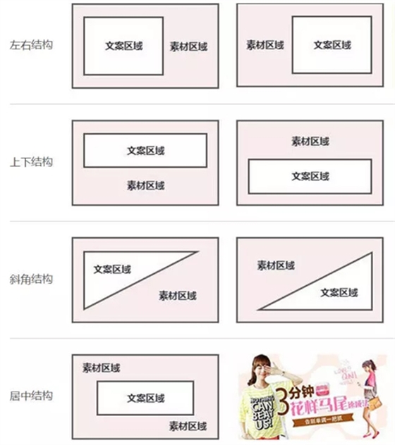 左右结构、上下结构、斜角结构、居中结构